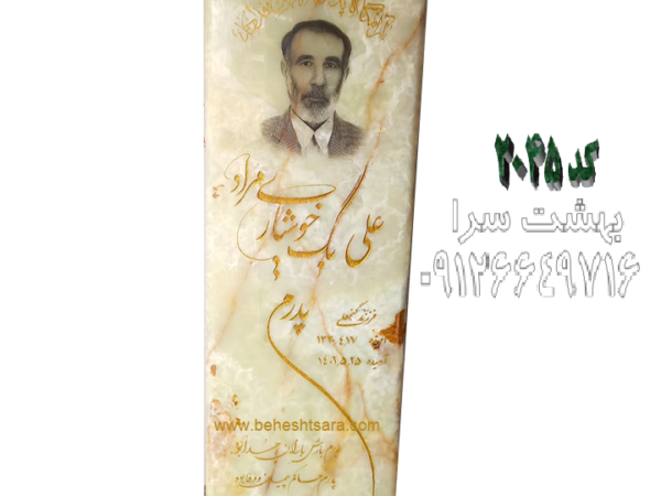 جهت خرید و مشاوره با شماره ( ۰۹۱۲۶۶۴۹۷۱۶ بهشت سرا ) تماس بگیرید . سنگ قبر مرمر کاهویی طرح باستان کد 2051