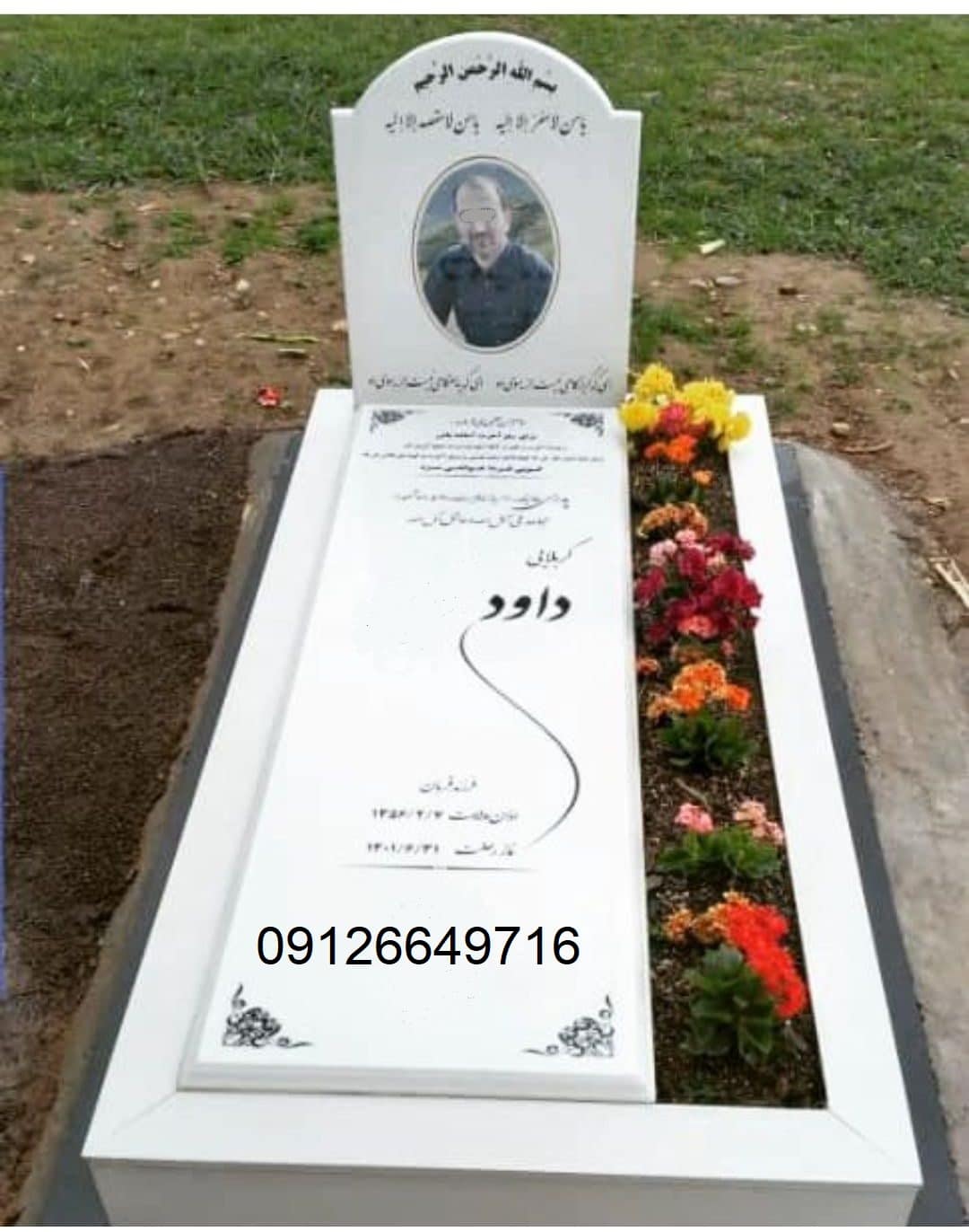 سنگ مزار سفید نانو مواد خارجی طرح باغچه کنار