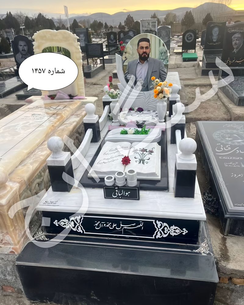 سنگ روی کار بصورت سه تیکه کتابچه . باغچه . قلب از جنس مرمریت ازنا ونصب سنگ یک تکه گرانیت در زیر سه تیکه مرمر به شکل سینی