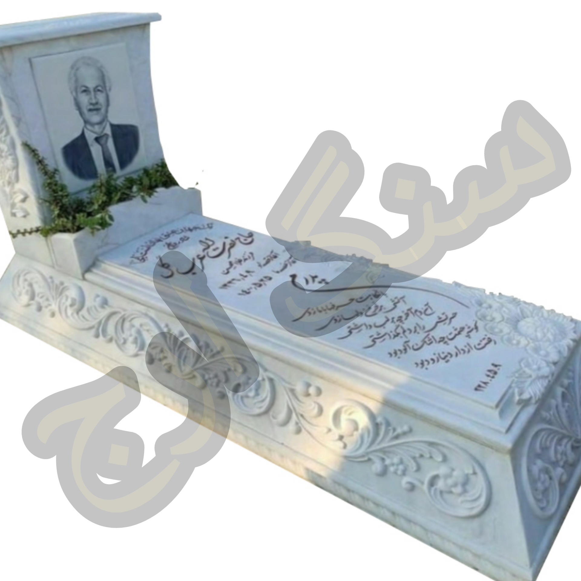 کتیبه نیز از جنس نیریز است که عکس رنگی روی تکه ای از سنگه نانوی ایرانی چاپ شده و در داخل کتیبه فرو رفته