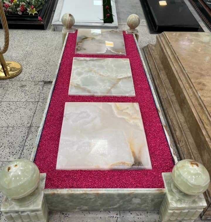 این سنگ از جنس مرمر آذر شهر،دارای چهار ستون در گوشه مزار می باشدو دارای قاب ارتفاع ۸ سانت و سنگ ریزه های رنگی و سه تیکه سنگ جهت روی مزار میباشد