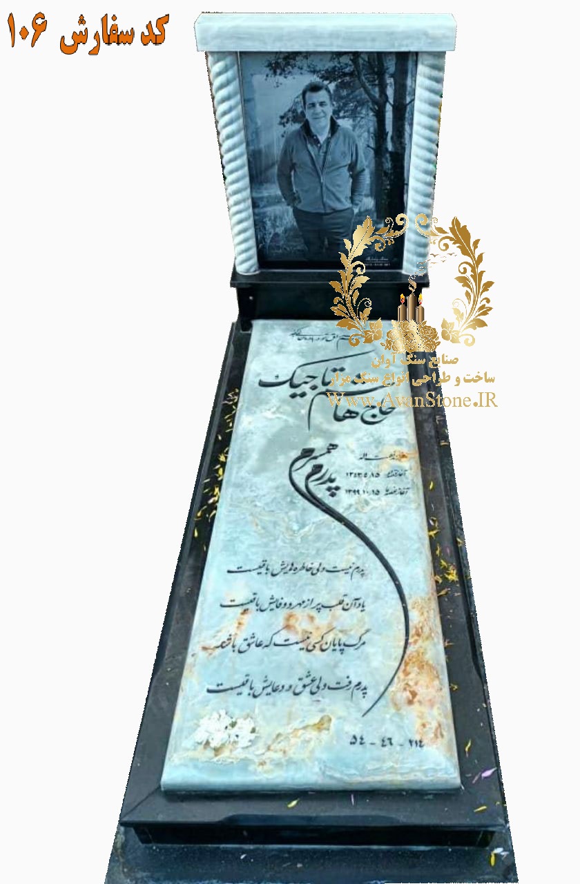 سنگ مزار ترکیبی مرمر آبی و گرانیت بلک سوپر کد 106